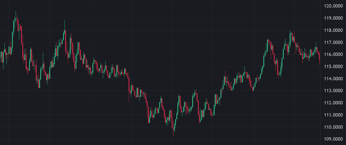 예를 들어 110~120$를 오가고, 현재는 115$인 코인이 있다고 치자.